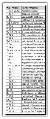 ![]() Kuntorastit, vain pvm. Klik yllä, niin koko taulukko (jpg) omalle välilehdelle. |